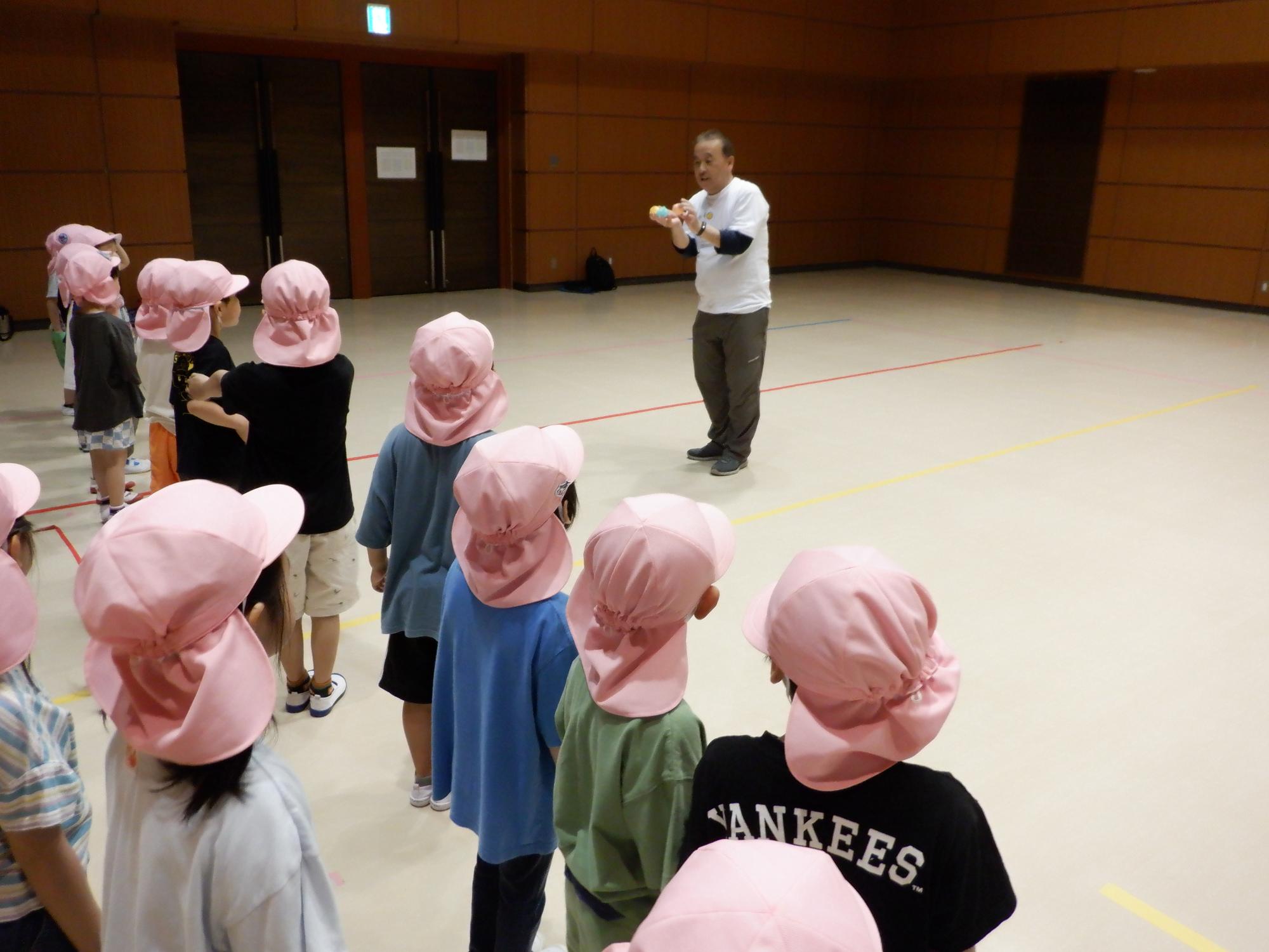 5月22日(木曜日)町公民館大ホールで体操教室を行いました。講師は香取市教育委員会の多田先生です。巧みな動きができるように、体ほぐしの運動やスティックやボールなど様々な用具を使った運動を行いました。とても楽しかったと大満足の子どもたちでした。