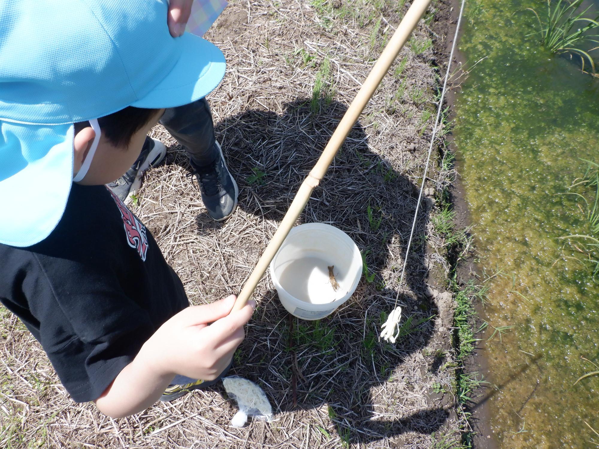 6月6日(金曜日)ザリガニ釣りに行きました。5日(木曜日)の予定でしたが朝降った大雨の影響で一日延期となりました。一日遅れでしたが、6日は天候にも恵まれ、たくさんのザリガニを見つけ、釣り上げることができました。事前に釣り方について先生方から教えていただいていたので、歓声をあげながら楽しく釣ることができました。