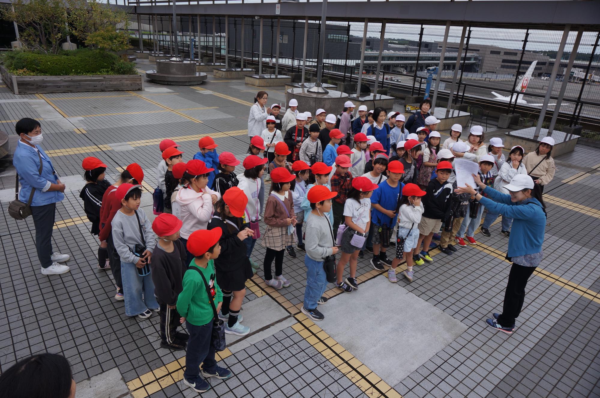 子どもたちは、離着陸する飛行機を間近に見て、大きな歓声を上げていました。また、空港では、大谷翔平選手の限定ショップにある大きなグローブの前で班ごとに記念写真を撮らせていただいたのもよい思い出となりました。