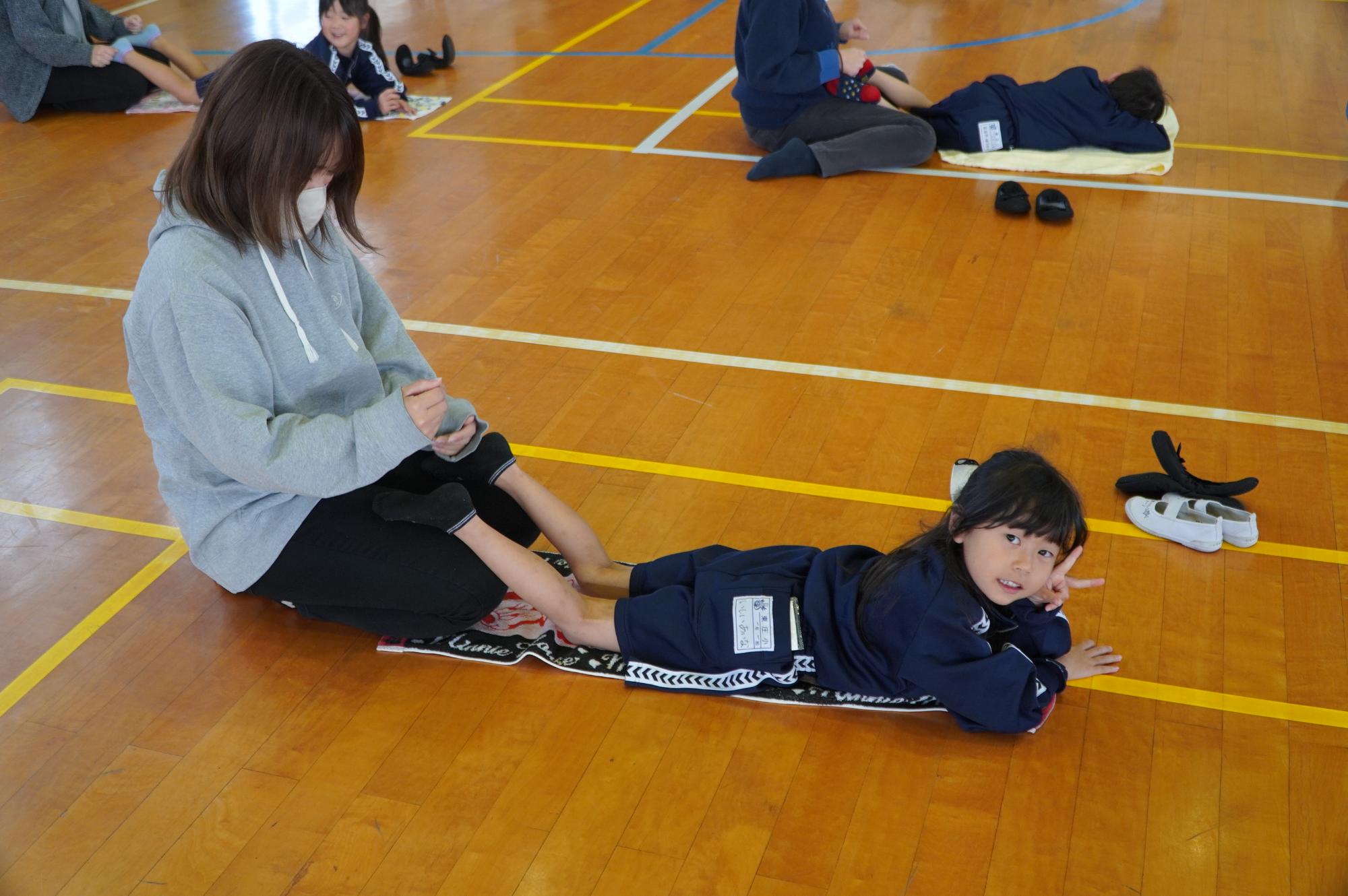 11月11日(火曜)1年生は体育館で行われた家庭教育学級に参加しました。今回は「親子のふれあい」をテーマにリラクゼーションとストレッチを教えていただきました。