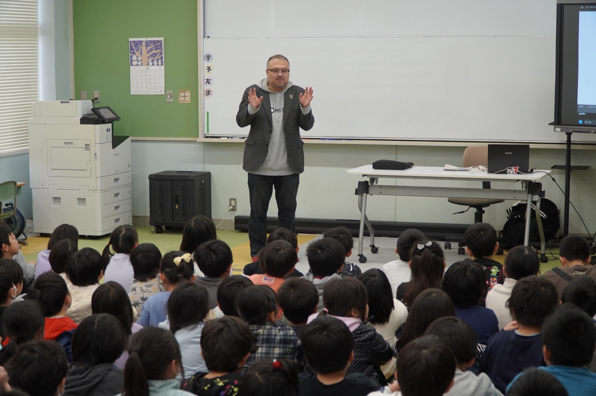 全校児童が2日・3日の2日間にわたり、学校運営協議会の会長である市野敬介さんを講師に迎え、「スマホ・ケータイ安全教室」を受講しました。