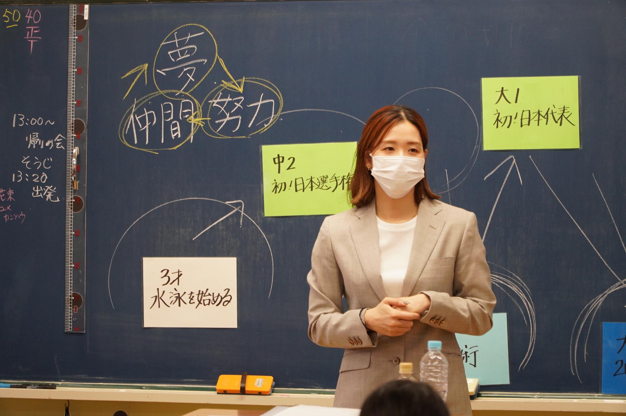 5年生は、2日・3日に分かれ、競泳のオリンピアンである寺村美穂さんによる「夢の教室」を受講しました。