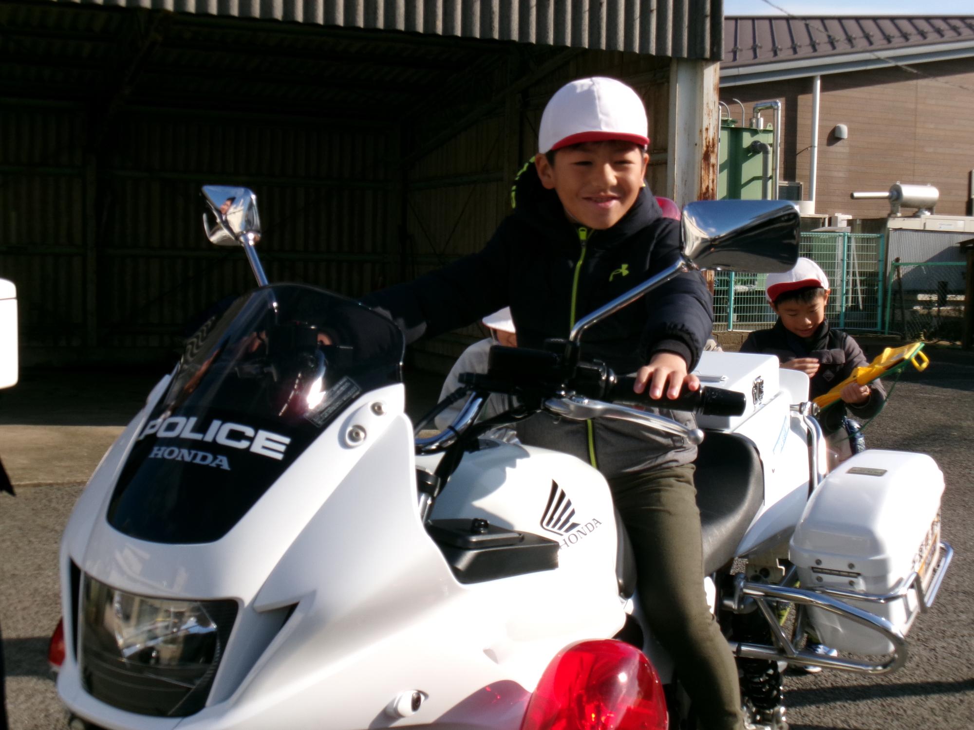 テレビで見かける鑑識の指紋採取を体験し、警察車両や白バイにも乗せていただきました。