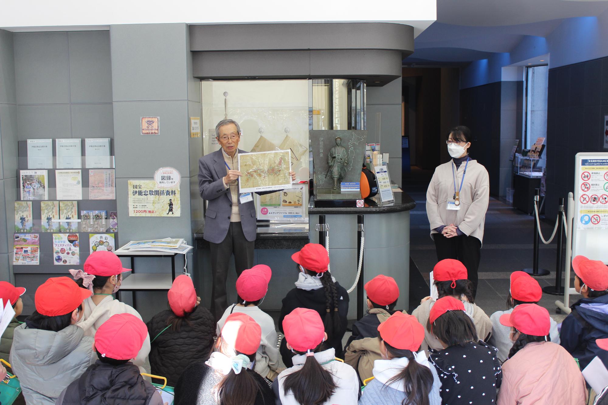 伊能忠敬さんは、56歳から、17年をかけて日本全国を測量、73歳で亡くなりましたが、その後は弟子たちが遺志を受け継いで『大日本沿海輿地全図』を完成させ、国土の正確な姿を明らかにした偉人です。記念館では、測量に使った器具やその方法について学びました。