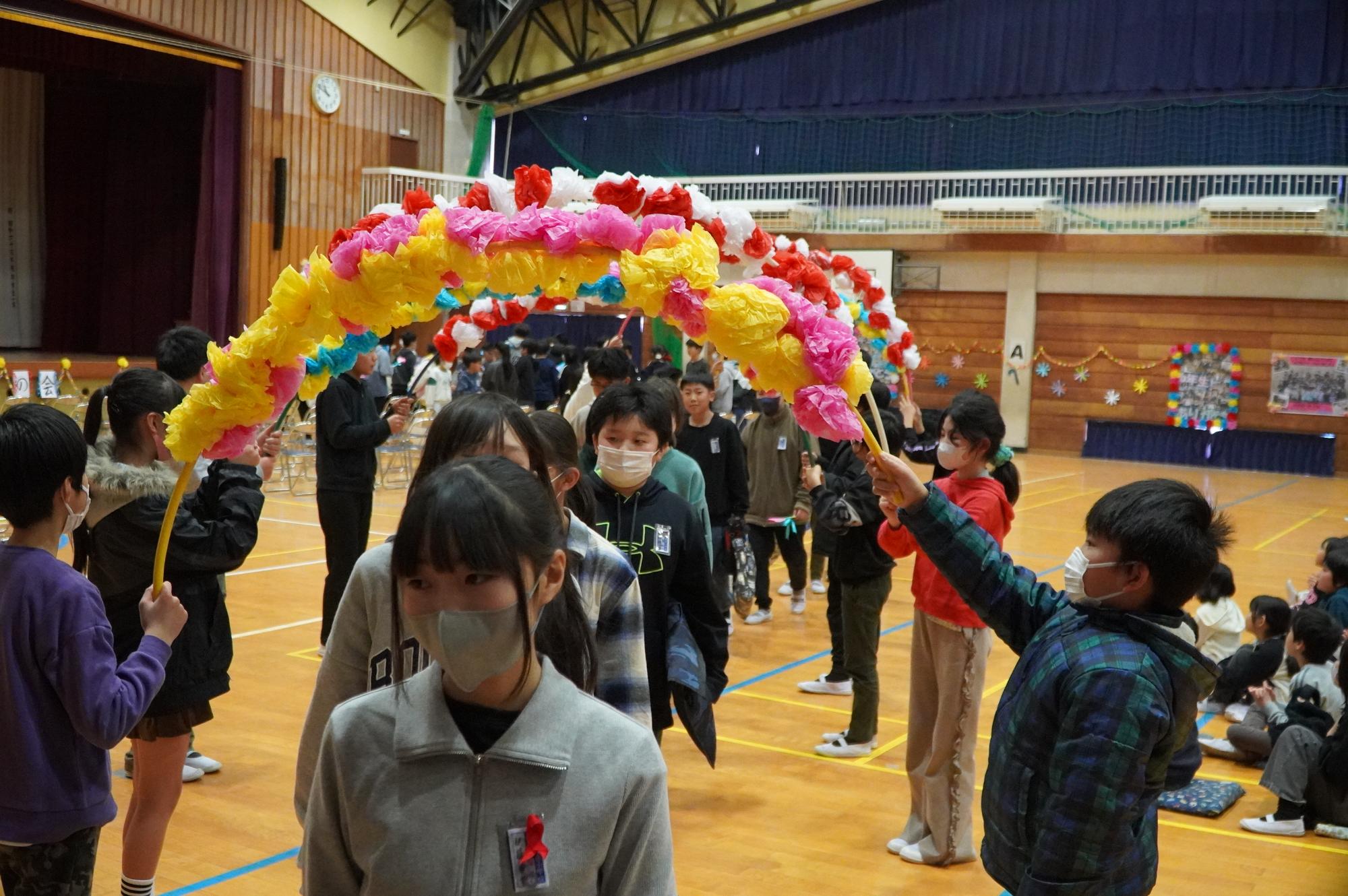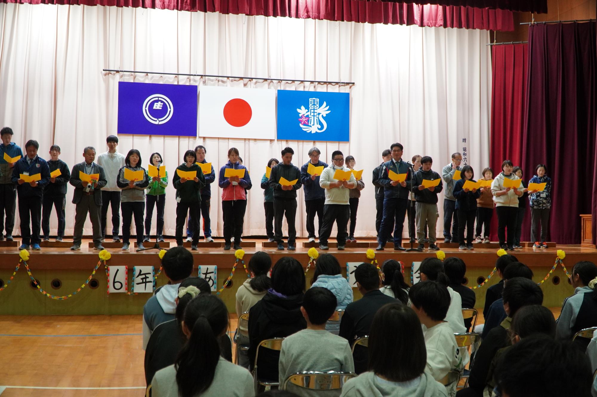 昨年度に引き続き、先生方からも歌声の贈り物として♪サンボマスターの「輝きだして走ってく」を披露させていただきました。みんなの感謝の気持ちが6年生に伝わる心温まる会となりました。
